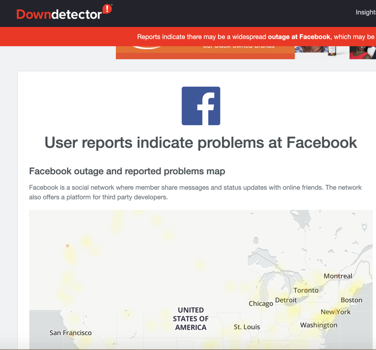 Share your problems with the Product Reviews community to gain help or reply. Gray News - Facebook Instagram and other apps are down Monday morning according to Downdetector. The following outage map shows the most recent locations worldwide where Facebook users have reported their issues and outages.